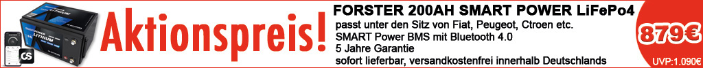 FORSTER 200Ah | 12,8V | 2560Wh | SMART POWER Lithium LiFePO4 Batterie mit Bluetooth 4.0 | integriertem 200A-400A BMS | Heizung